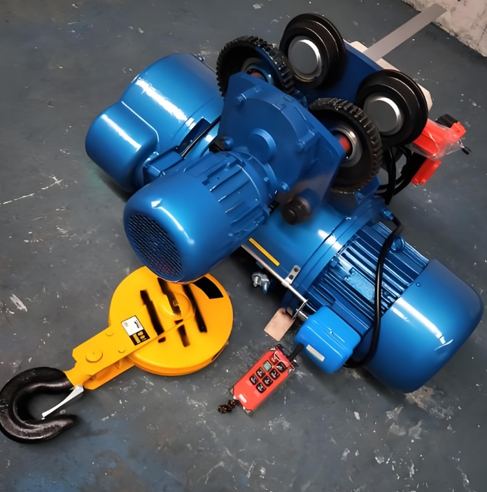 安全與輔助部件:配備上下行程保護(hù)斷火限位器,緊急情況下可切斷主電路,防止重物沖頂或墜底;下吊鉤為高強(qiáng)度鍛造件,可 360 度旋轉(zhuǎn),還配有防脫落安全舌片。此外還有聯(lián)軸器、軟纜電流引入器等部件,保障設(shè)備整體穩(wěn)定運(yùn)行。
