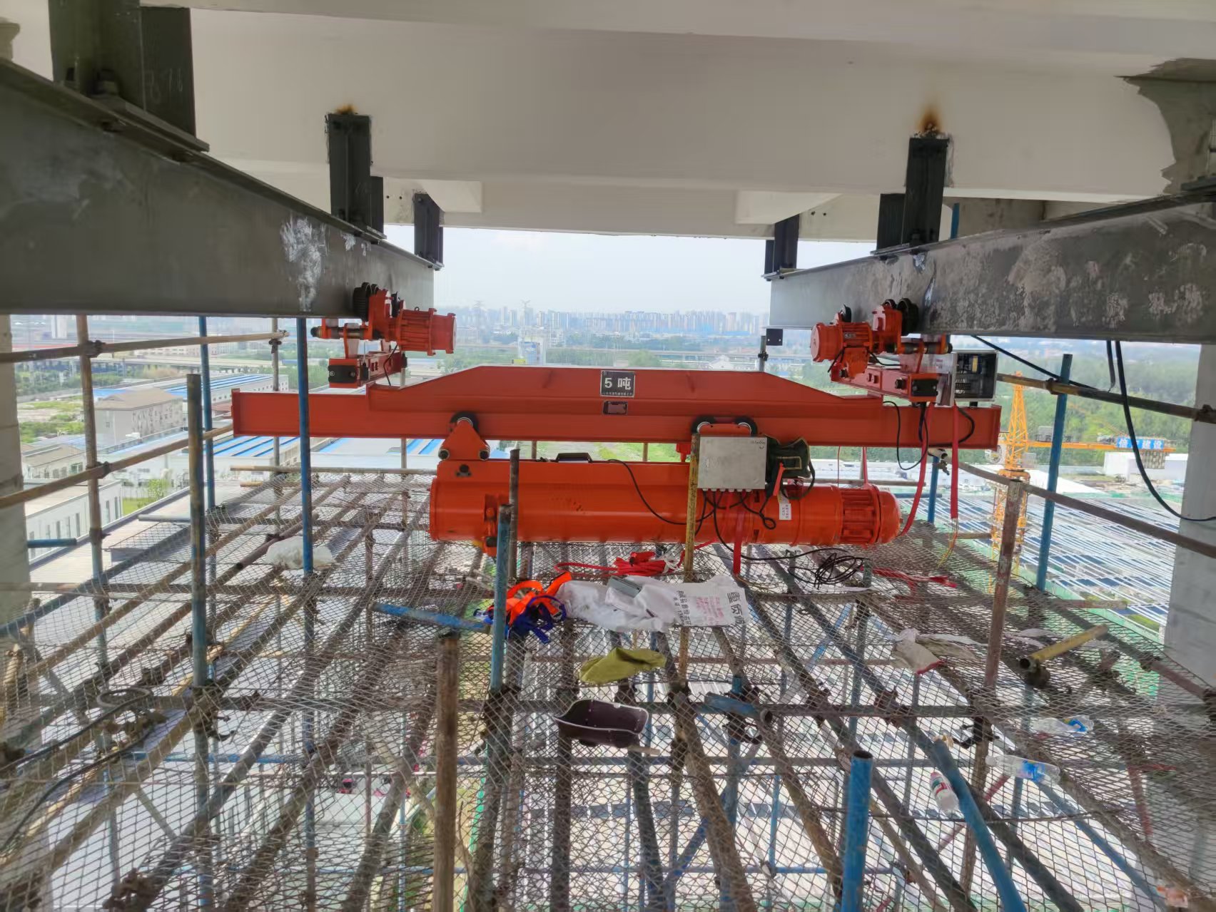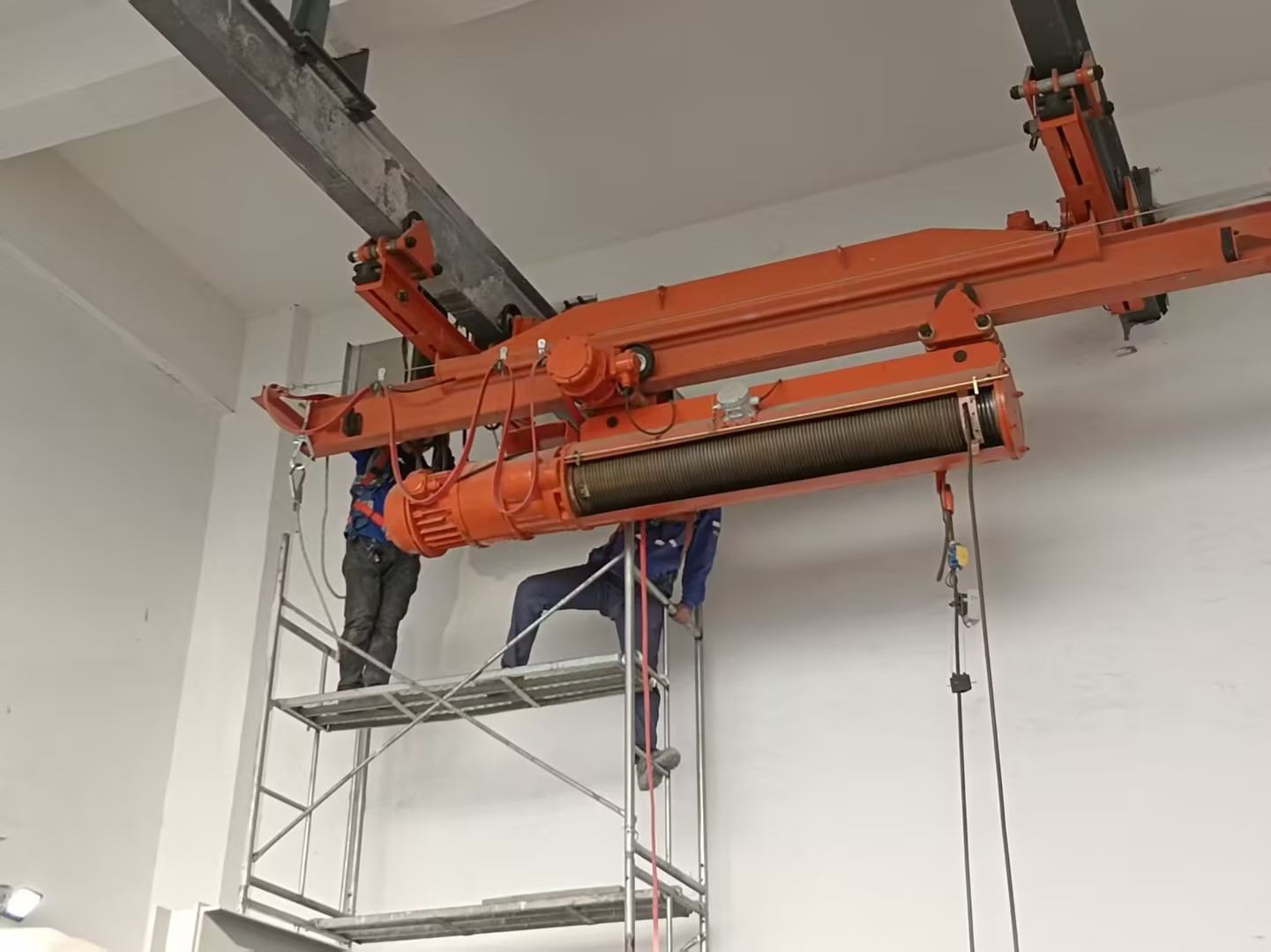 懸掛式安裝:主梁和運(yùn)行機(jī)構(gòu)都懸掛在車間上方的工字鋼軌道下翼緣運(yùn)行。這種設(shè)計(jì)使其特別適合無法安裝傳統(tǒng)支撐式承重梁的廠房。