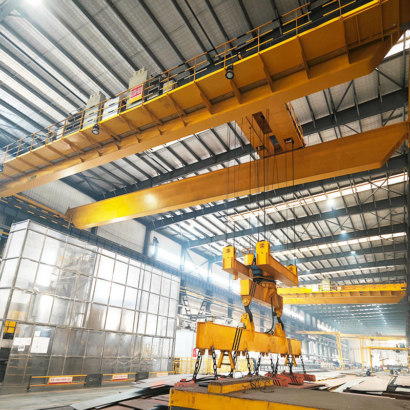 通過電磁吸盤完成物料搬運工作,該起重機適用于鋼廠倉庫,用作搬運鋼板、碎料等。? ? ? ? ?