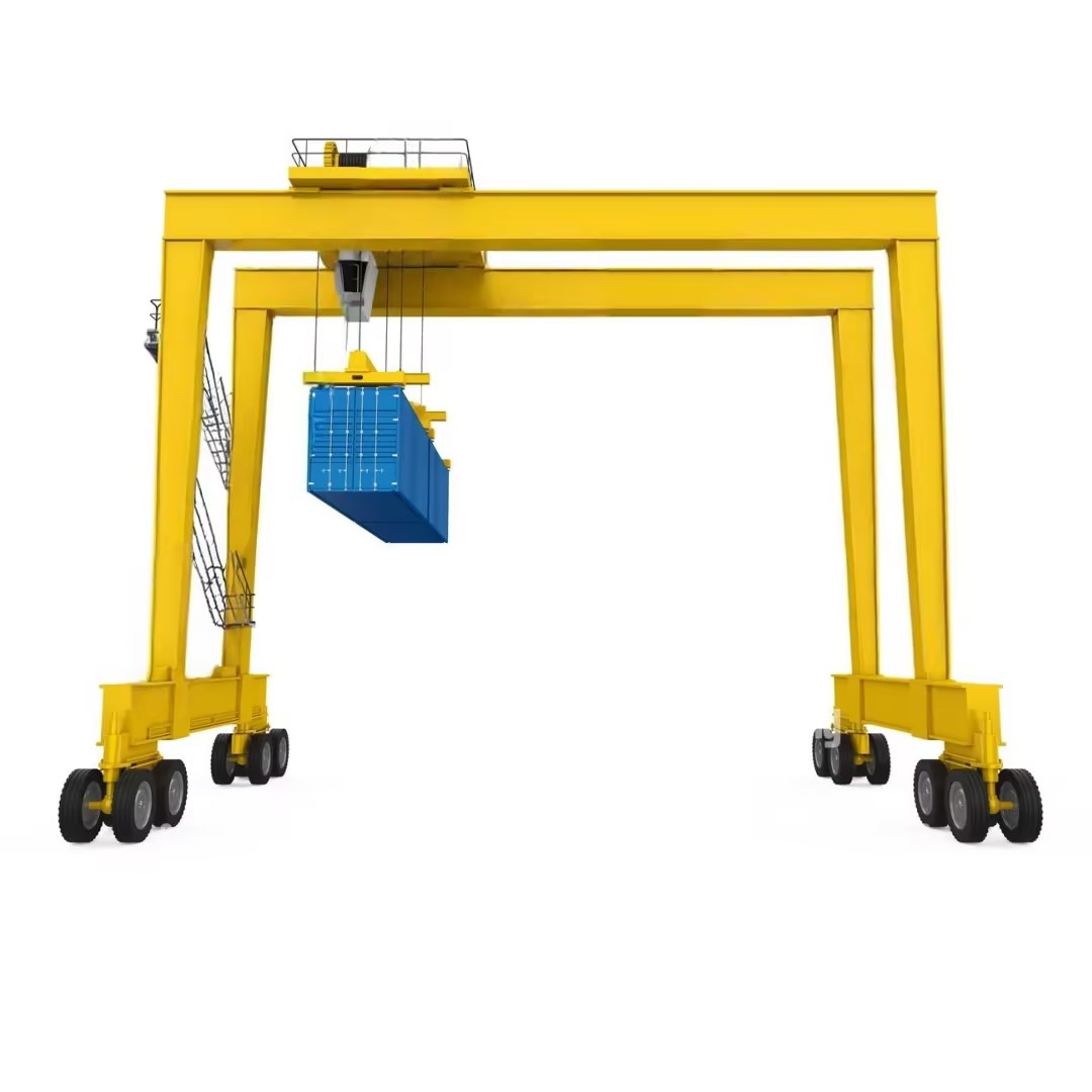 輪胎式集裝箱門式起重機(jī)(Rubber-tyred Gantry Crane,簡(jiǎn)稱 RTG) 是一種以輪胎為行走機(jī)構(gòu)、專為集裝箱堆場(chǎng)作業(yè)設(shè)計(jì)的重型起重設(shè)備,主要用于集裝箱的堆垛、轉(zhuǎn)運(yùn)、裝卸車作業(yè),廣泛應(yīng)用于港口集裝箱堆場(chǎng)、鐵路貨運(yùn)站、內(nèi)陸集裝箱中轉(zhuǎn)站等場(chǎng)景,核心優(yōu)勢(shì)是機(jī)動(dòng)性強(qiáng)、場(chǎng)地適應(yīng)性高、無需鋪設(shè)軌道,可靈活調(diào)整作業(yè)區(qū)域。