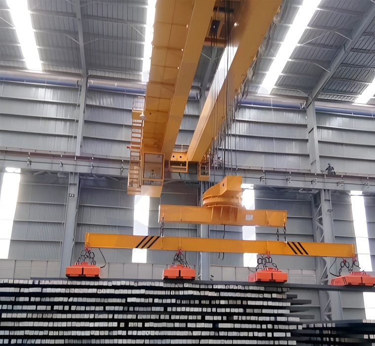 主要用于鋼廠、船廠、港口、貨場等室內(nèi)或露天的固定跨間,裝卸及搬運各種超長的型材物料等。